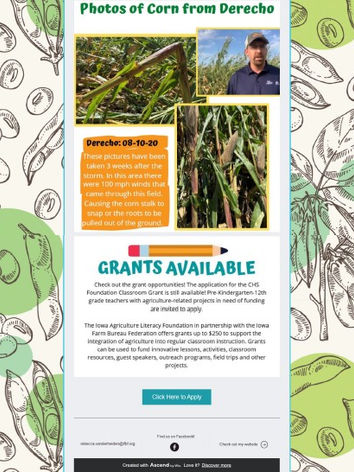 I have used Ag in the classroom for two years in a row. It is wonderful when aligning the Iowa Core with hands-on science activities that incorporate agriculture into the lessons. The kids really enjoyed lessons dealing with the soil, the earth, as well as hatching baby chicks. I highly encourage teachers to take advantage of this wonderful program, that helps educate teachers and also bring agriculture into the classroom.